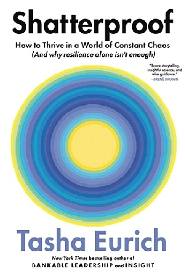 Tasha Eurich is an organizational psychologist, researcher and New York Times bestselling author whose mission is helping people thrive in an ever-changing world. With a PhD in Industrial-Organizational Psychology, Eurich has been recognized as the world’s leading self-awareness coach and communication expert, working with clients like Google, Salesforce, the NBA, Nestlé and the White House Leadership Development Program. As principal of The Eurich Group — a boutique firm helping executives transform when stakes are high — she is a truth teller to some of the world’s most powerful people. She’s written three books, “Bankable Leadership,” “Insight” (which famed Wharton professor Adam Grant calls one of the three books he recommends most often), and most recently, “Shatterproof: How to Thrive in a World of Constant Chaos (And Why Resilience Alone Isn’t Enough).”